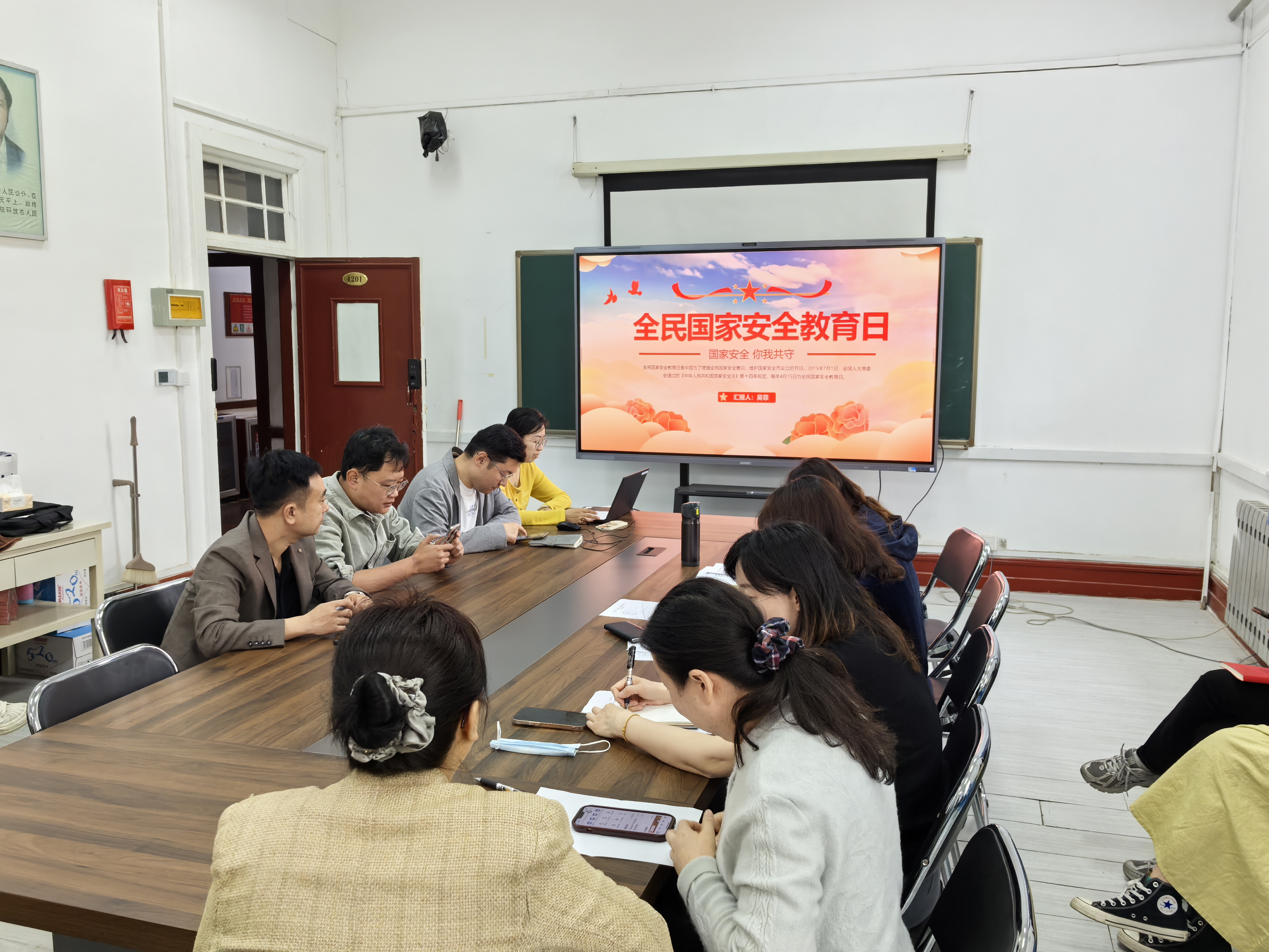 王伟主任传达了近期学校领导班子读书班专题辅导报告会暨党委理论学习中心组(扩大)会议专题学习中央八项规定精神相关内容,以及党委理论学习中心组(扩大)学习暨保密纪律专题党课相关内容。她提出,国家安全与我们每一个人息息相关,我们每一位教职员工都必须时刻树立总体国家观意识,注重工作中的细节和生活中的小事,以“国家安全人人有责”的共同体意识和“时时放心不下”的主人翁意识,把总体国家安全观融入立德树人、教育教学、科研管理全过程,为培养担当民族复兴大任的时代新人筑牢安全防线。