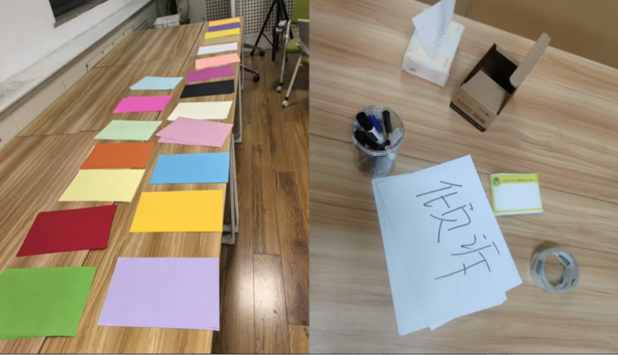 在暖身环节,同学们通过自我介绍,拉近了彼此距离,放松了身心状态,为后续活动的开展营造了良好的氛围。在转换环节,同学们挑选出代表自身压力的彩纸,精心创作着作品,并将内心的压力进行着具象化的倾诉。在工作环节,同学们通过“与压力身份互换”,对压力进行全新理解,同时引发如何对压力相处的深入思考。最后,在总结环节,同学们各抒己见,分享着自己的减压妙招,为彼此提供丰富实用的建议。