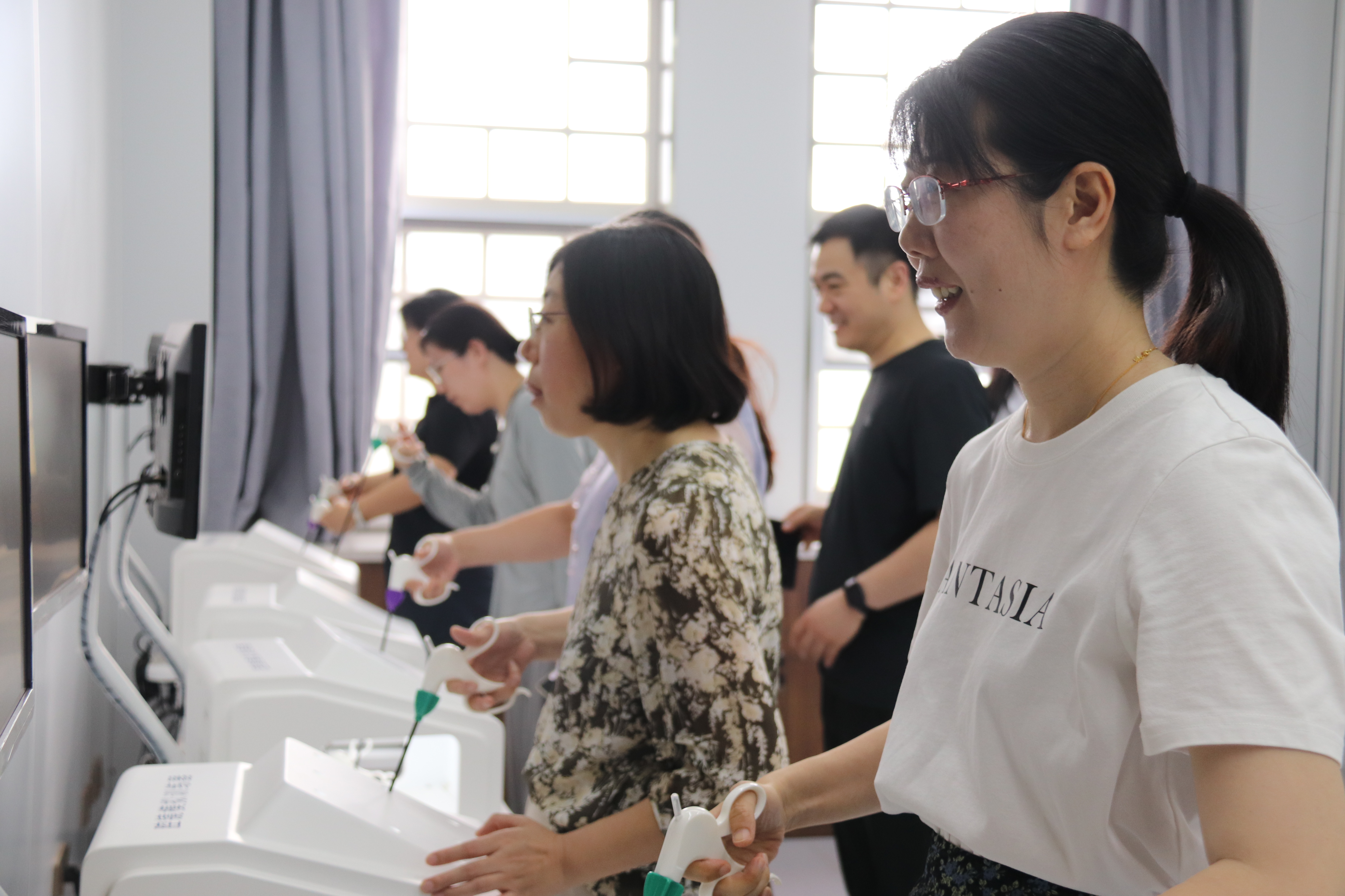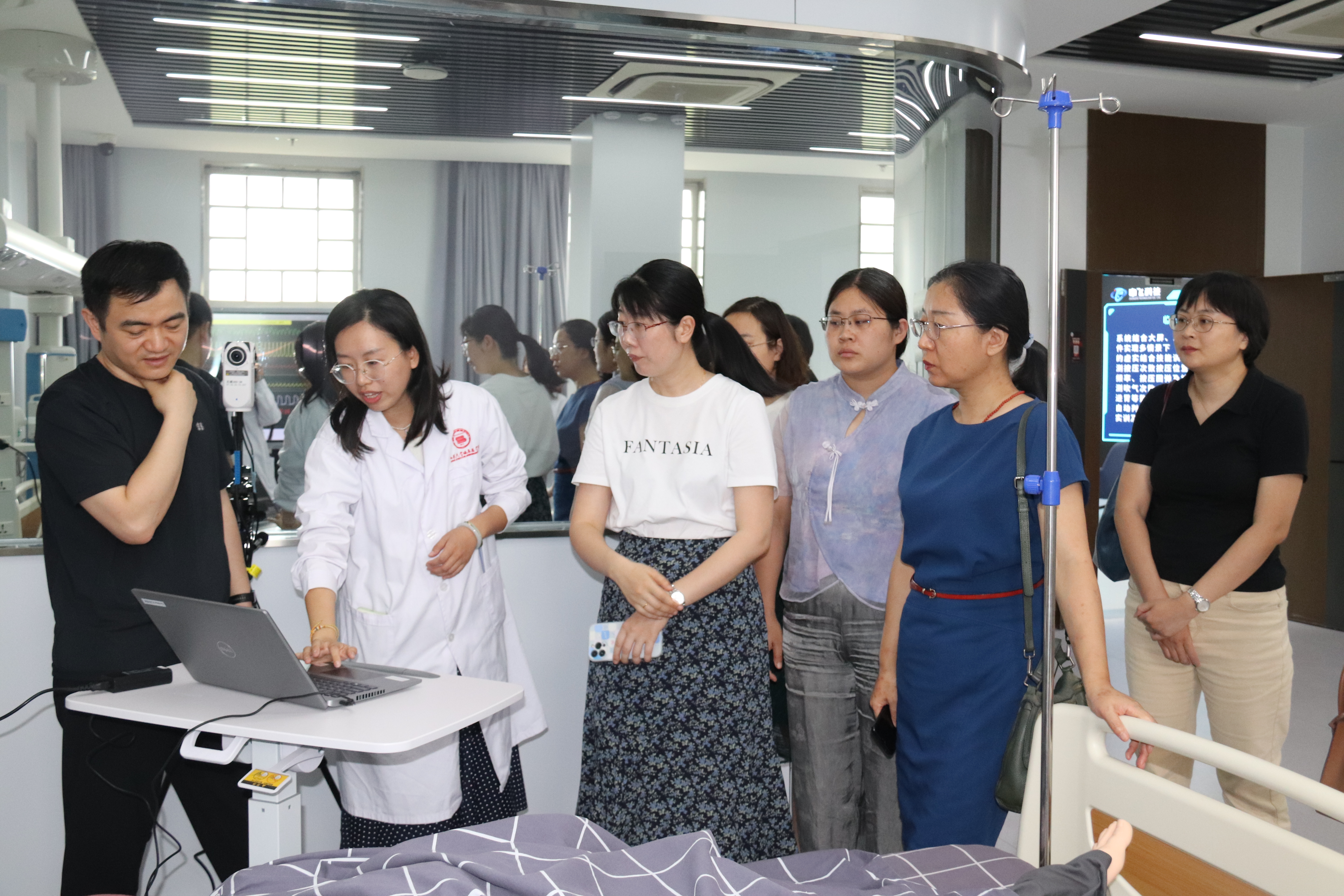 交流过程中,山东大学第二医院内科教研室副主任徐冬玲重点了解了医学模拟中心在内科综合模型人、腹腔镜模拟训练等板块的建设成果。在内科综合模型人教学区,双方围绕如何利用高仿真模拟人开展多系统疾病诊疗训练展开讨论,针对模型人在呼吸衰竭、心律失常等急危重症场景中的功能应用提出建设性意见。在腹腔镜模拟训练室,教研室团队亲身体验了腔镜操作训练系统,并结合内科微创手术发展趋势,就模拟训练课程的分层设计与效果评估进行深入探讨。