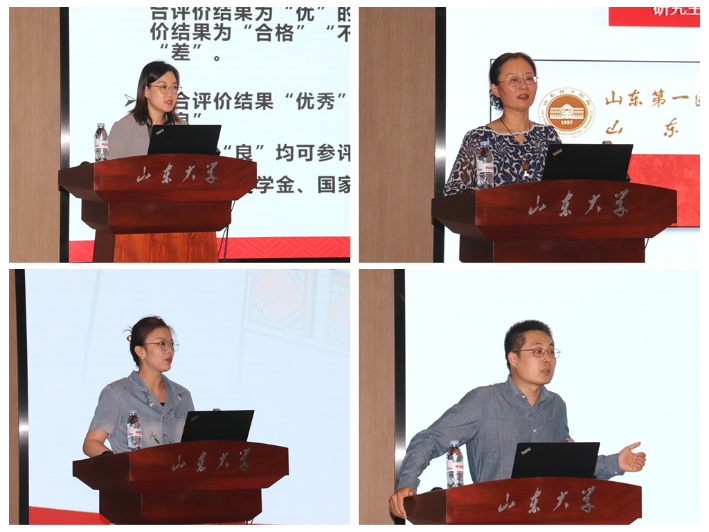 入学教育环节中,趵突泉校区图书馆信息咨询服务部主任赵杰老师、趵突泉校区公共安全管理科教导员杜春兴老师、山东大学心理健康教育与咨询中心副主任马道伟老师、齐鲁医学院教学管理办公室衣明慧和田馨雨老师分别讲授《图书馆资源与服务》《大学生安全教育》《塑造阳光心态,应对研途新生活》《临床医学研究生培养管理解读》和《临床医学研究生学位授予要求》专题辅导课程,赵倩、柴明莉、吴菲、魏蓉芙、孔祥楠、徐雨辰老师分别就奖助政策、实验室安全、职业规划、党团建设等作详细解读。